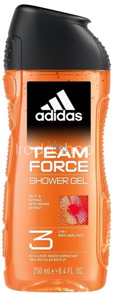 Pánský sprchový gel Team Force s atraktivní mužnou vůní je vhodný jak na tělo, tak i obličej a vlasy. Dokonale myje veškeré nečistoty a zanechá pokožku svěží a důkladně hydratovanou. Aktivníí látky: extrakt z pomerančů, proteinu a provitaminu - osvěžují a navrací pokožce zdravý vzhled, provitamin B5 - podporuje regeneraci buněk, chrání.